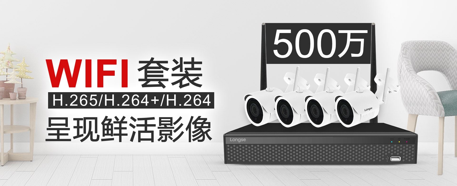 长视500万WIFI监控套装,装备500万高清镜头及HiSilicon处置计划,