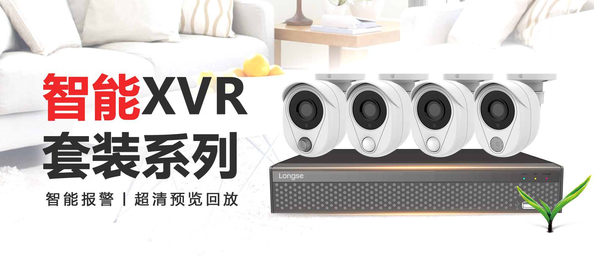 长视智能XVR高清监控套装系列,具有PIR传感器摄像机、气体侦测摄像机、声响报警摄像机,