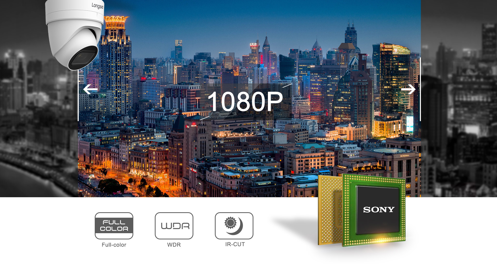 装备200万高清镜头,能显现在黑夜覆盖下的1920 x 1080的超星光全彩画质,将黑夜看作白天。